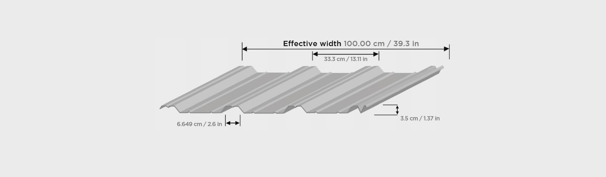 Its high structural resistance, large rainwater discharge capacity, double anti-siphon channel and easy installation make this sheet the most widely used in the construction sector, roofs, walls, among others.